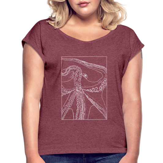 Lineart Oktopus im Rahmen - Frauen T-Shirts mit gerollten Armen