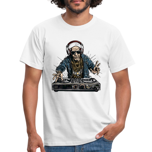 Cooler alter Mann als DJ mit Brille, Mütze und Kopfhörern - Männer T-Shirt
