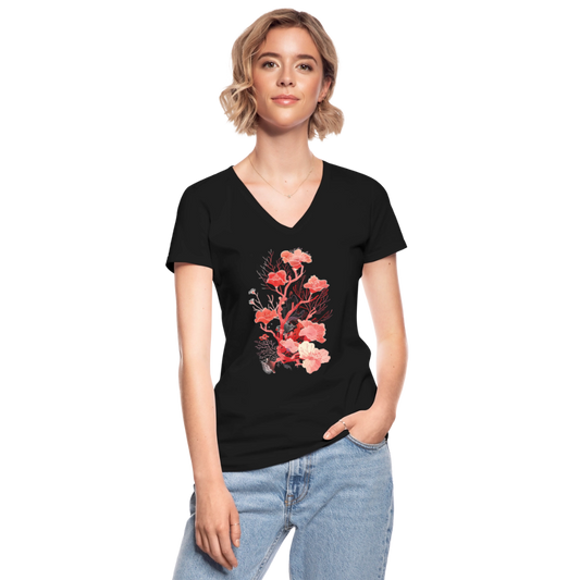 Zarte Korallen Blumen - Klassisches Frauen-T-Shirt mit V-Ausschnitt