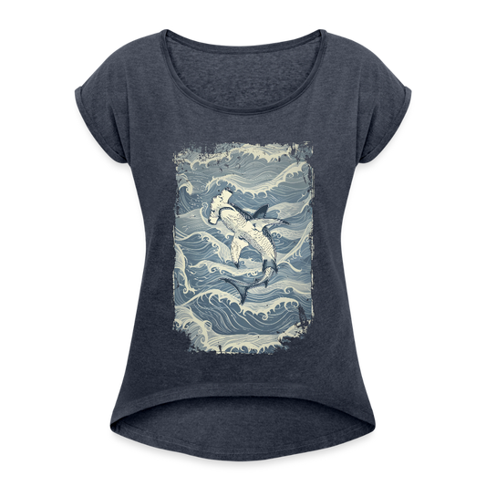 Vintage Hammerhai im japanischen inspirierten Tattoo Stil - Frauen T-Shirt mit gerollten Ärmeln
